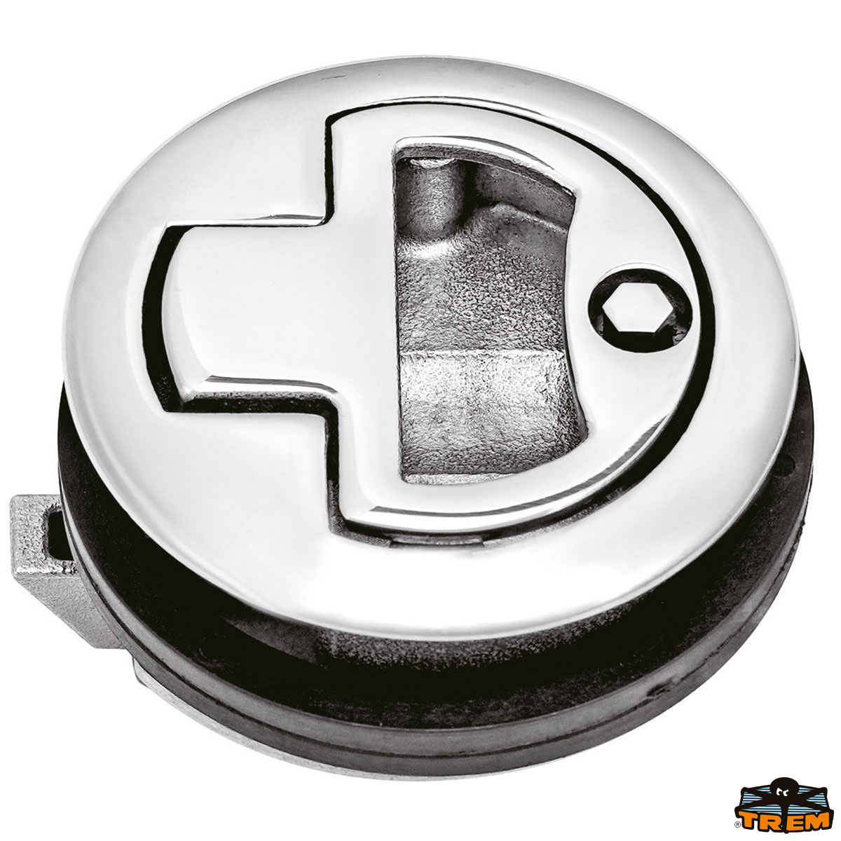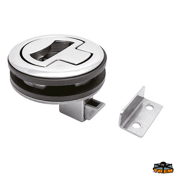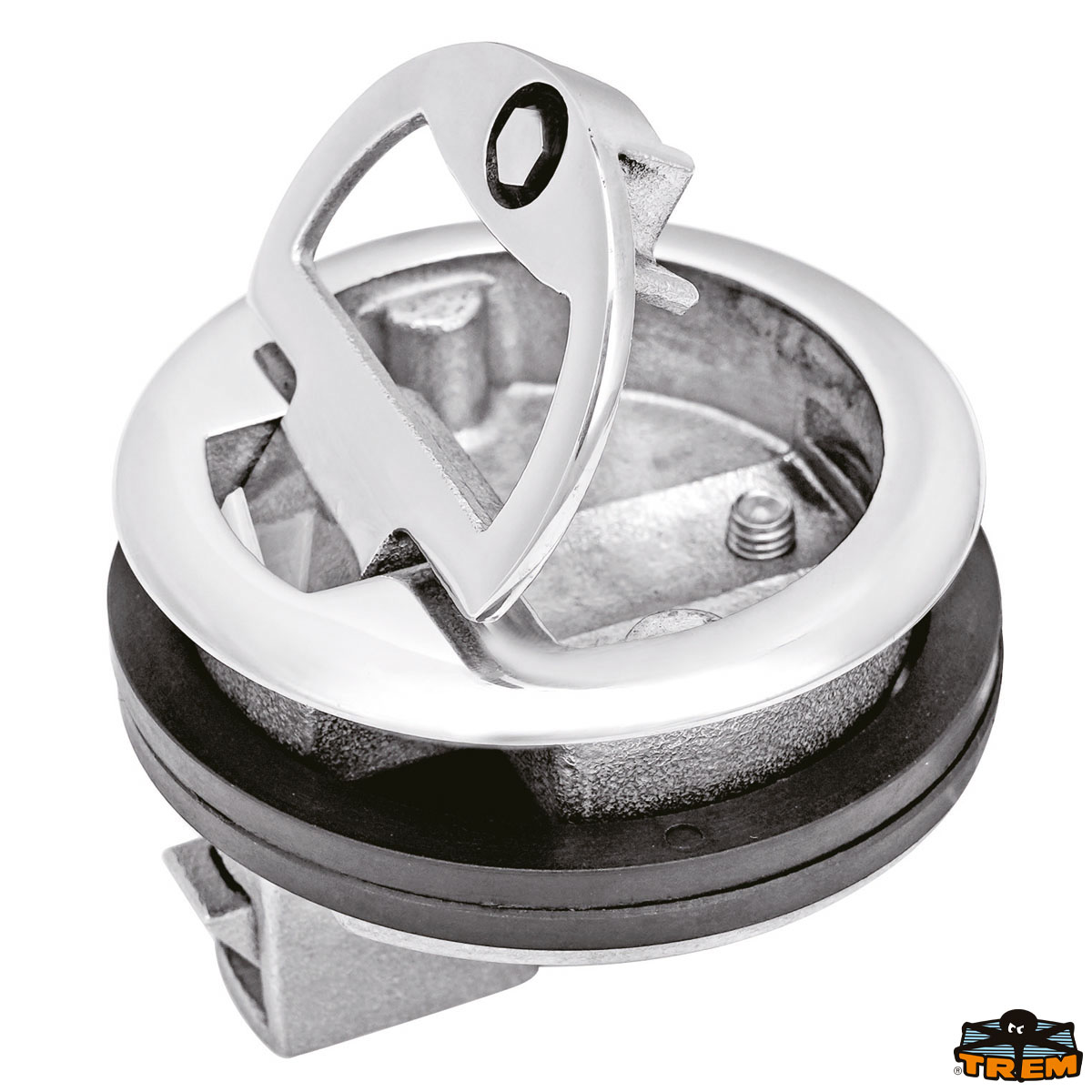 Alzapagliolo e chiusura portelli con maniglietta rientrante a molla e dente di fermo a scatto