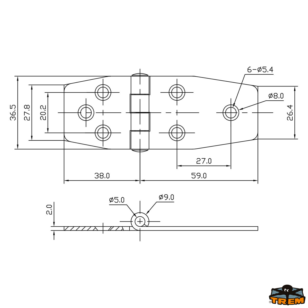 Cerniera inox AISI 316 36,5x97 mm
