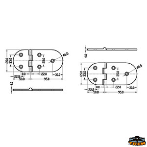 AISI 316 stainless steel hinge 145x65 mm