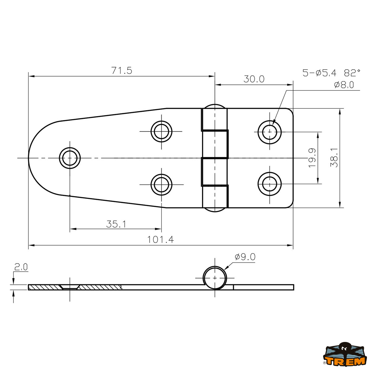 AISI 316 stainless steel hinge 40x100 mm
