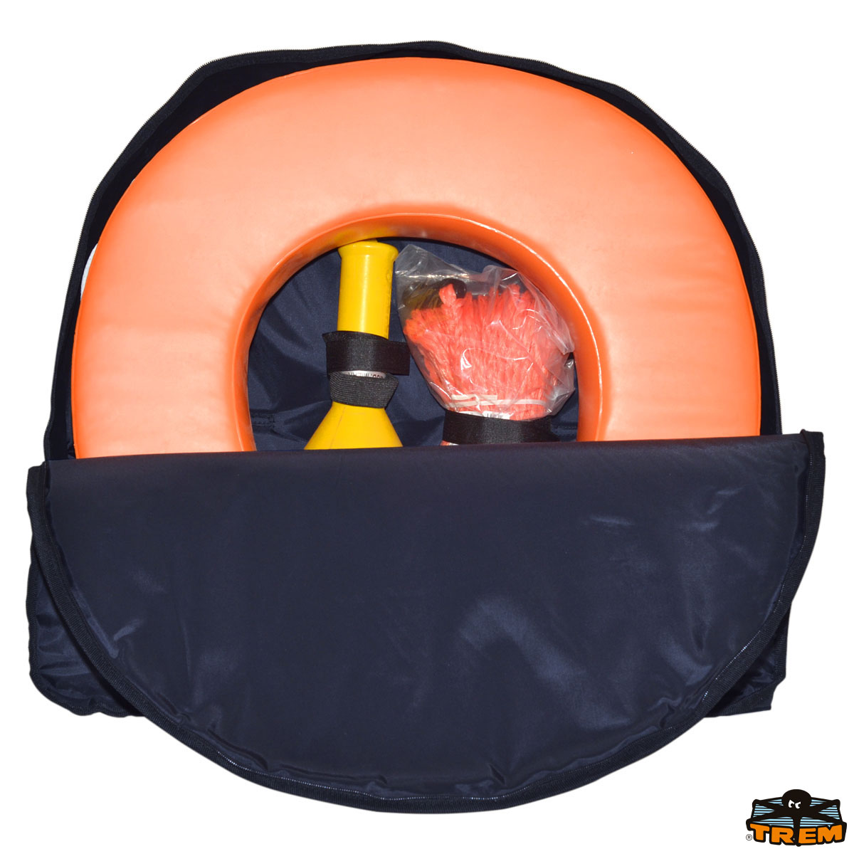 Contenitore blue ompleto di salvagente ferro di cavallo, cima e boetta