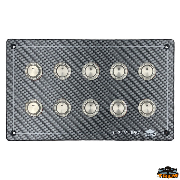 Finitura in finto carbonio. Interruttori a luce bianca.Pulsanti/interruttori in Aisi 316 con grado di protezione IP67. 9-32 Volts. Fornito interamente pre-cablato con cap-puccio per facilitare il cablaggio dell’utenza desiderata e l’eventuale intervento su un guasto. Provvisto di manuale d’installazione. Pulsanti e interruttori omologati CE.