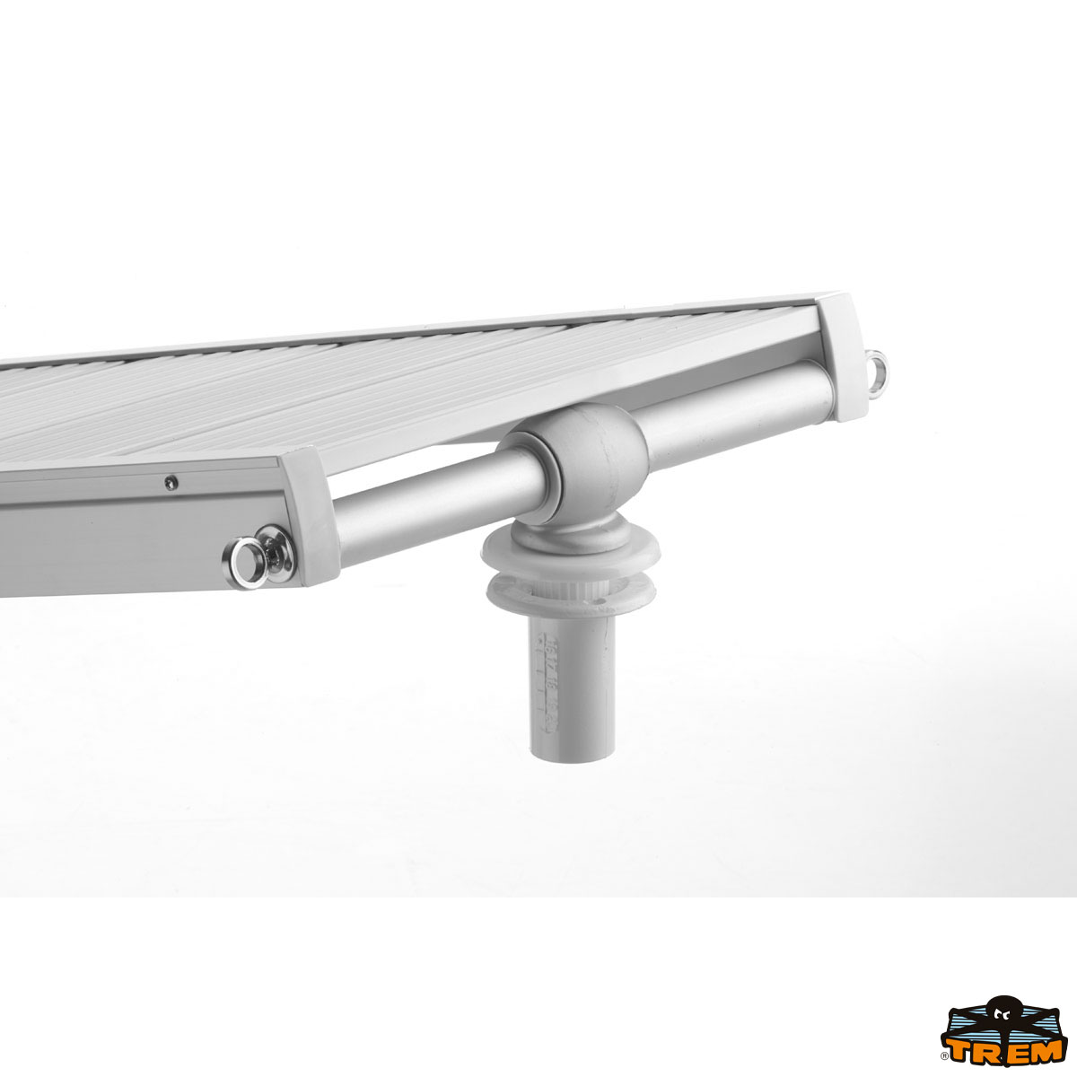 Fully manufactured in aluminium and grating in African teak. With wheels and pivot pin.