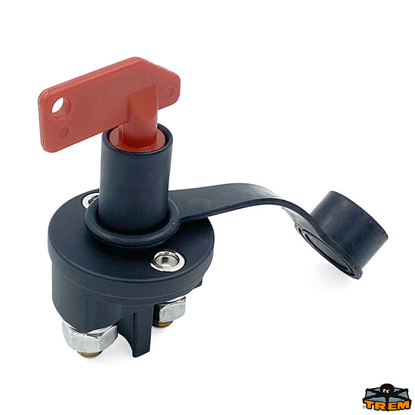 Made of black polycarbonate, flange fixing; fitted with watertight rubber cap and nickel-plated splash-proof key. Mandatory for mounting on a positive cable, under ISO 10133 standards.