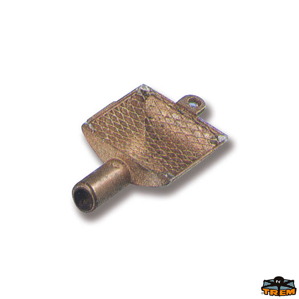 In ottone con filtro in rete 97x55 mm. Portagomma Ø 16 mm.