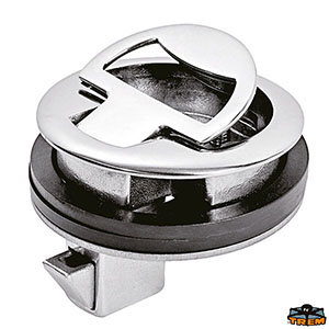 Alzapagliolo e chiusura portelli con maniglietta rientrante a molla e dente di fermo a scatto