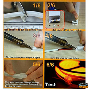 Manufactured in silicone gel, it does not overheat and does not undergo any structural alteration from -25 ° C to + 70 ° C in temperature. Silicone is the most flexible material, particularly suitable for very difficult working corners. The bar can be very easily cut to measure. Please note that the contact is on the whole bar (which has no cut points). Cutting to the desired size is very easy, as shown in the diagram below. This technology delivers even and diffused light. For interior and exterior applications (IP67).