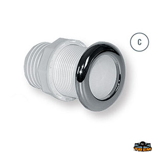 Fabbricata in materiale plastico bianco, con flangia in acciaio inox Aisi 316, con o senza portagomma.