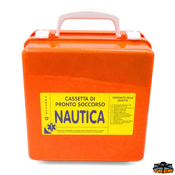 Cassetta pronto soccorso Valigetta in contenitore stagno, con supporto a parete. Ideale per imbarcazioni da diporto con equipaggio non formato da personale marittimo. Vecchia Tabella D.