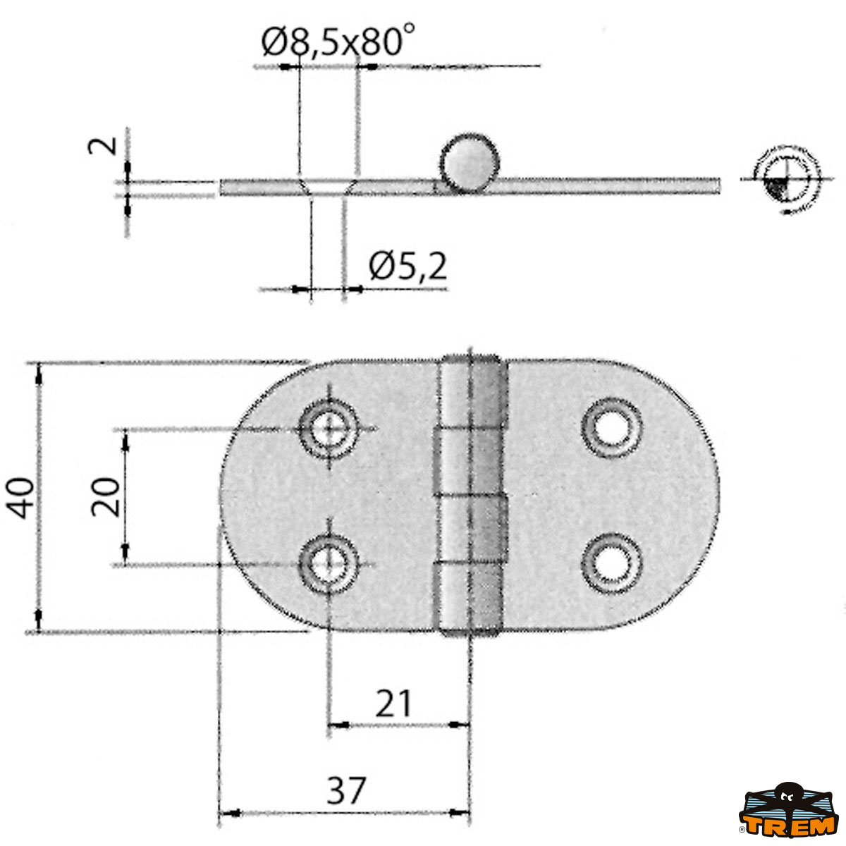 Cerniera inox AISI 316 74x40 mm
