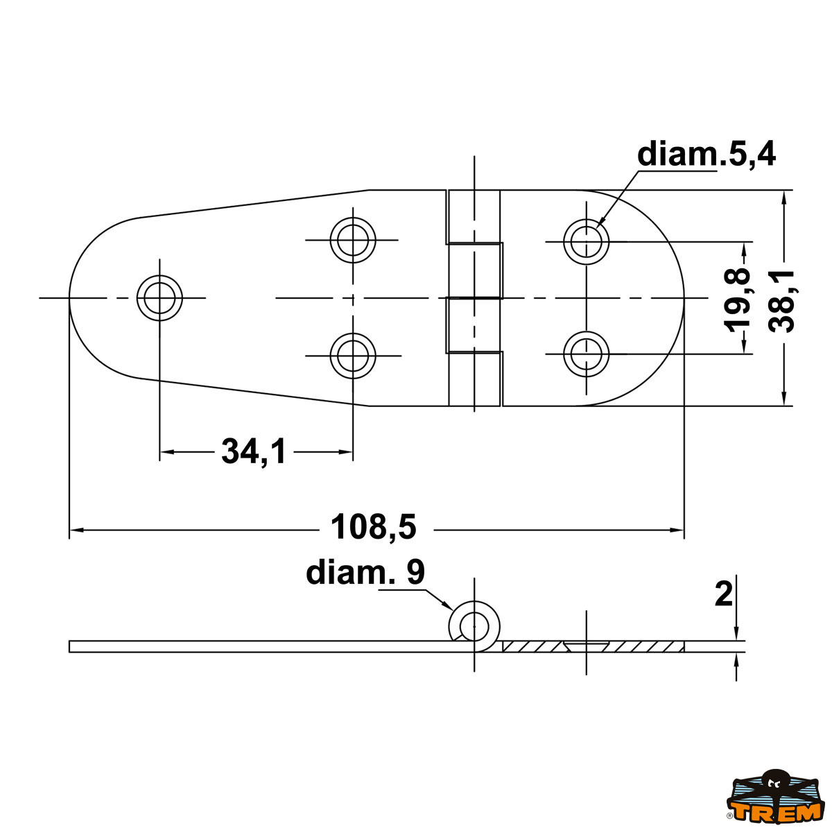 AISI 316 stainlesss steel hinge 82x65 mm