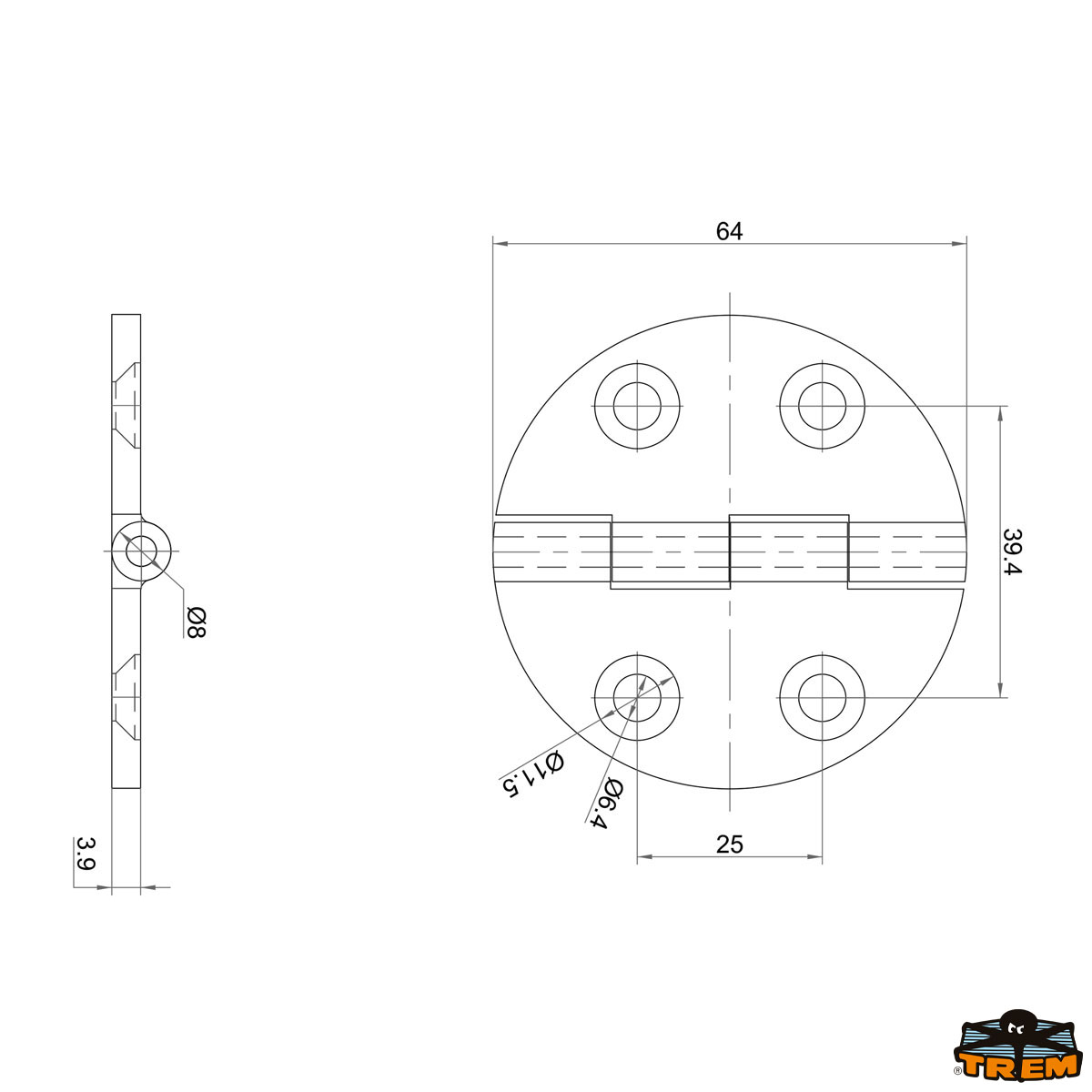 Cerniera inox AISI 316 65x65 mm rotonda