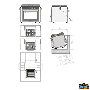 Forno con maniglia ergonomica e porta ventilata, doppio vetro con termometro integrato, griglia cuoci cibo, dissipatore omogeneo di calore e copribruciatore in alluminio.