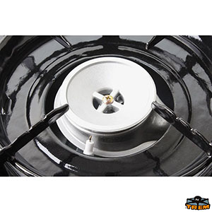 Hotplate with integrated piezoelectric ignition and aluminium burners. Adjustable gas flux. Complete with small transport case. Without flame failure device.