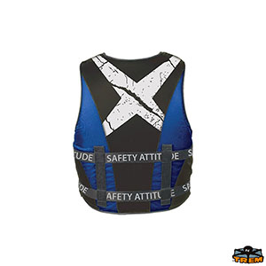 Fast opening 3-belt closing system. In compliance with UNI EN ISO 12402-5. With underlegs