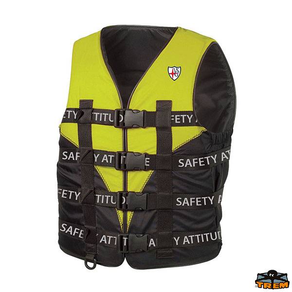 Closure with 4 belts and fast opening belt with underlegs. In compliance with UNI EN ISO 12402-5.