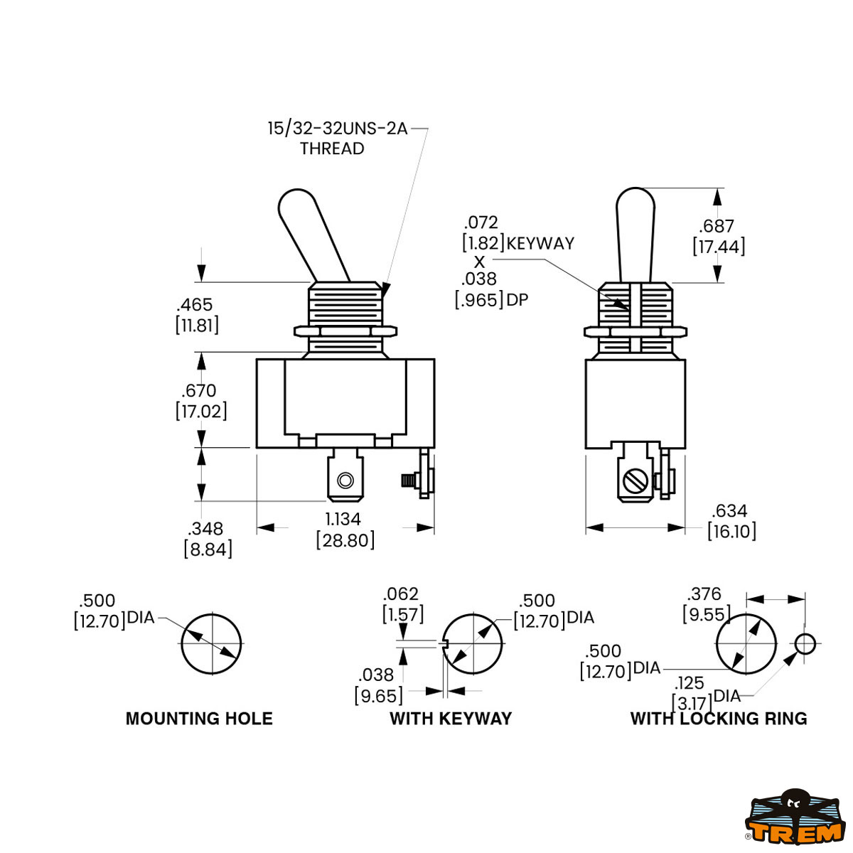 Interruttori per quadri stagni. Forniti senza cappuccio L0700078. Fabbricati in ottone nichelato. 10A. 250V. AC, 15A. 125V. AC e 15A. 12V. DC.