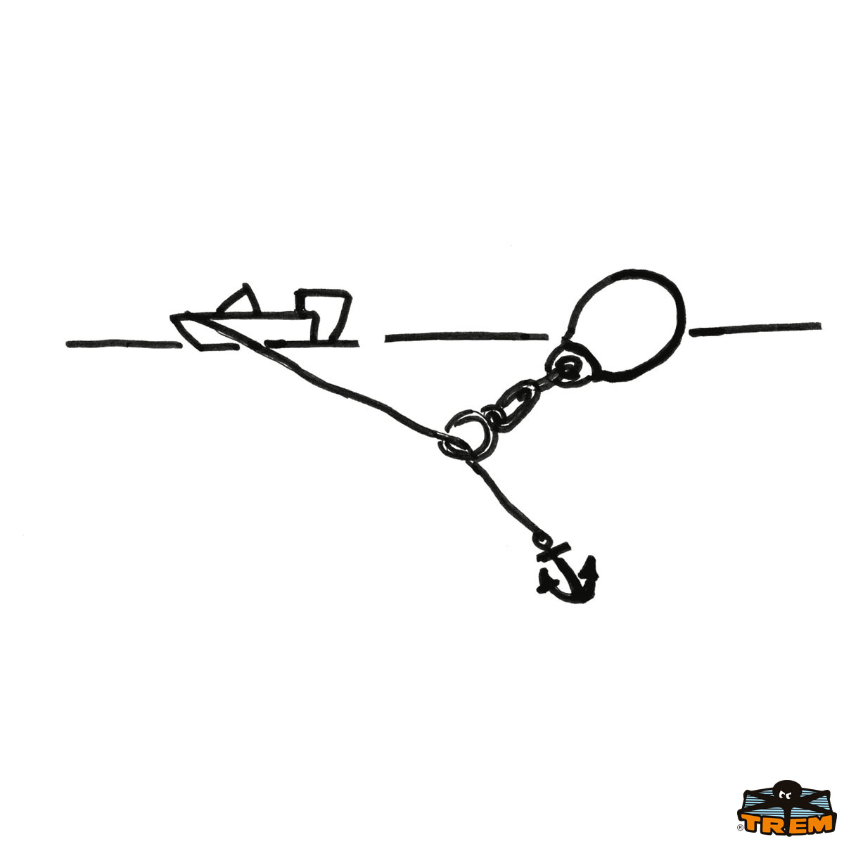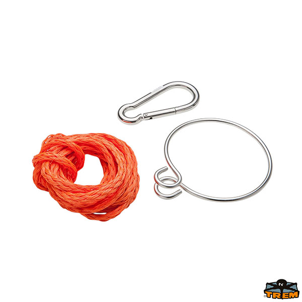 Legare la corda da un lato al parabordo e dall’altro al moschettone. Fissare quindi il moschettone all’anello. Abbassare il galleggiante e trainare l’ancora ad una velocità di 6-8 nodi. Il galleggiante fa scendere la cima d’ancora fino all’ancora, liberandola dal fondo e riportandola in superficie.
