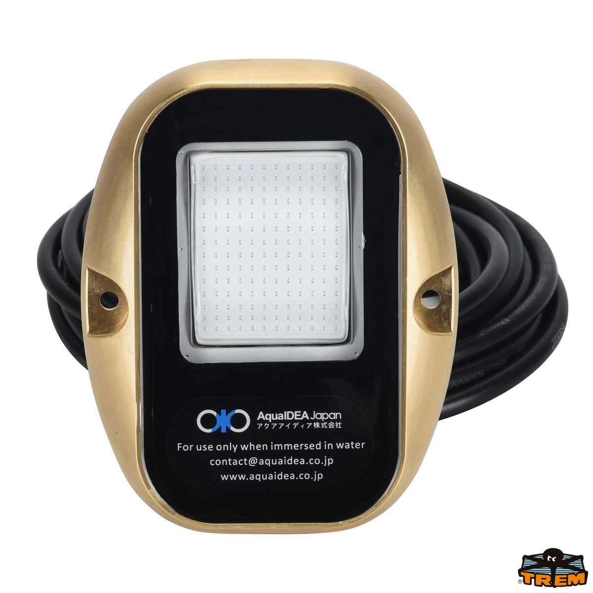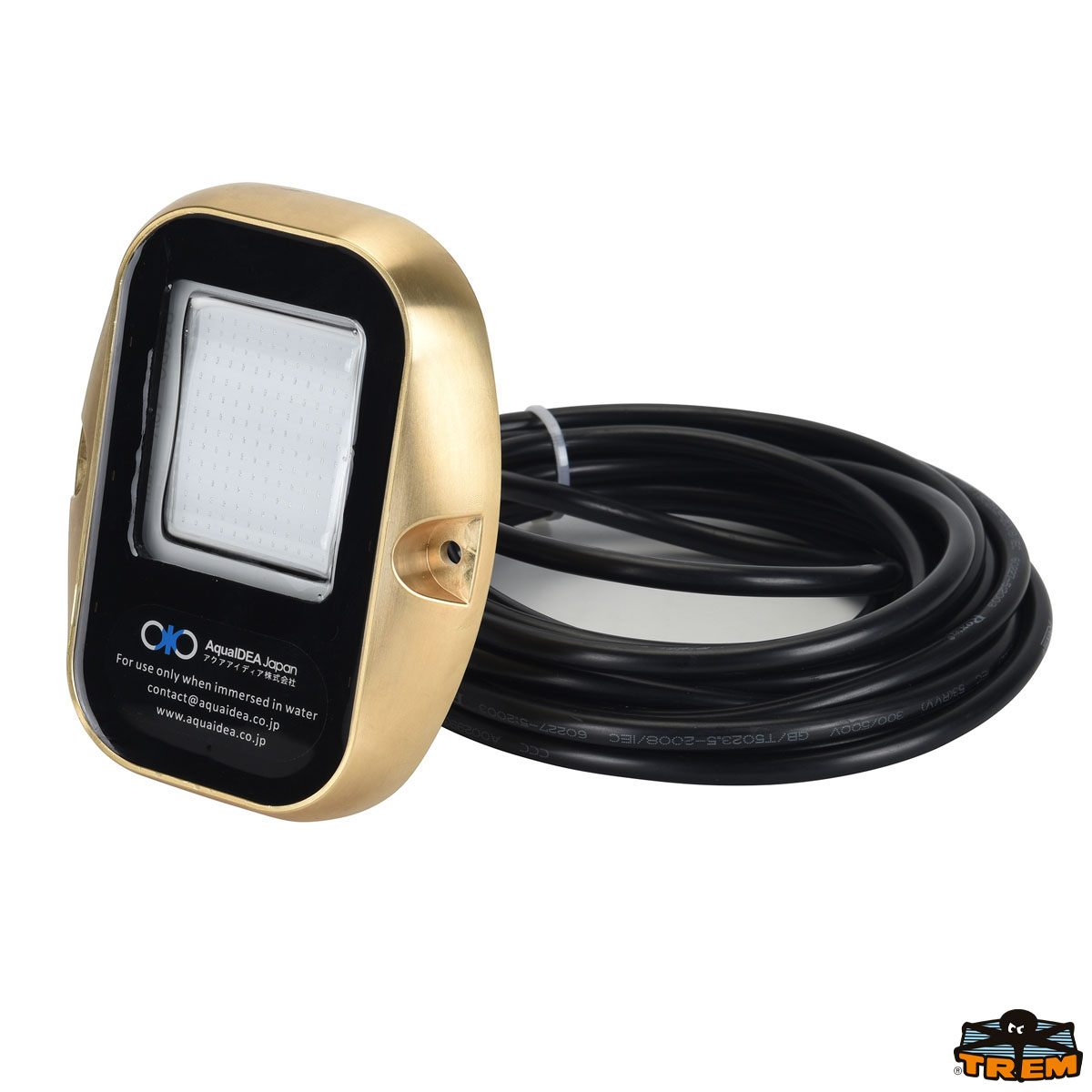 Realizzata in ottone isolato da resine che garantiscono l’isolamento. Dal supporto interno esce soltanto il filo per l’alimentazione. Guscio: sigillato. Adatta per barche, Jetski, pontili. Realizzata per essere utilizzata esclusivamente immersa nell’acqua.