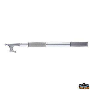 Gancio in nylon grigio, manico in alluminio anodizzato e doppia manopola di impugnatura.