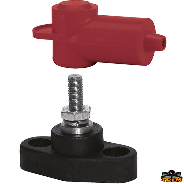termoplastico rinforzato. Barra in rame argentato. Perno in acciaio inox. Cappuccio rosso di protezione.