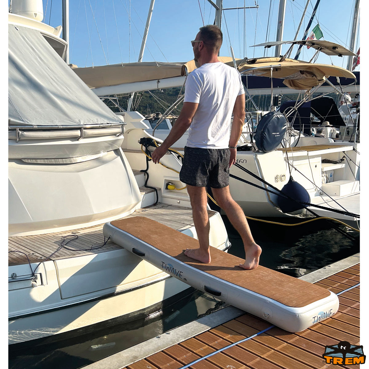 Inflatable floating gangway T-WAVE