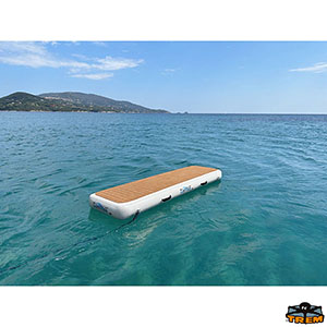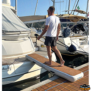 Floating gangway made of PVC + EVA, resistant to UV rays. Double non-slip surface on the top and bottom (allowing reversibility and greater protection against rubbing on the quay). The double layer stiffens the gangway and allows to minimize its bending when in use. 4 stainless steel D-rings: one for each corner to secure the board in any setting, whether as a walkway or platform. It stands out for the little space required on board, for its lightness and exceptional rigidity when inflated. Supplied with carrying bag. Colour Grey and White.