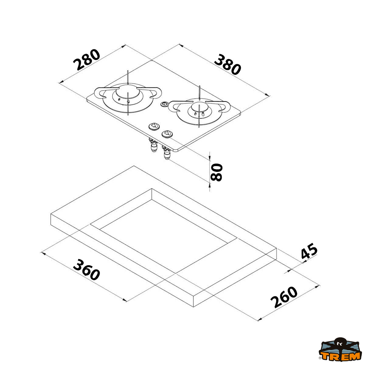Dimensioni mm: 380x280x80