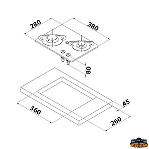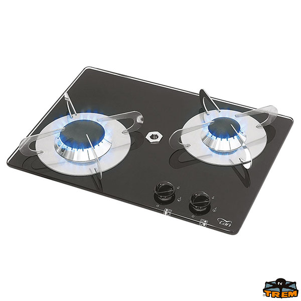 Piano cottura a gas da incasso compatto in vetro a 2 fuochi