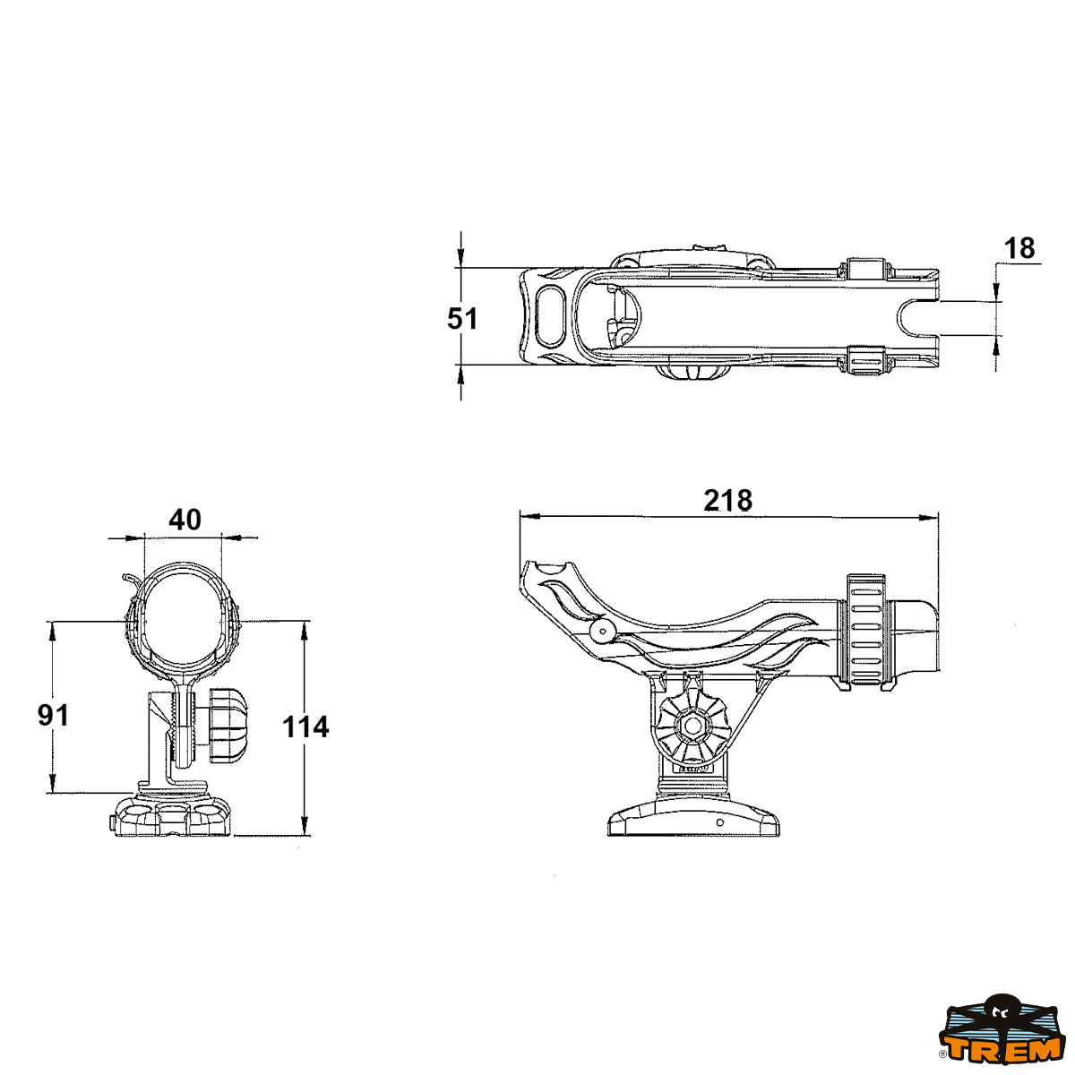 Rotazione orizzontale 360°, verticale 90°. Sistema di blocco della canna.