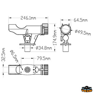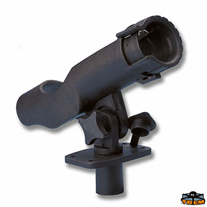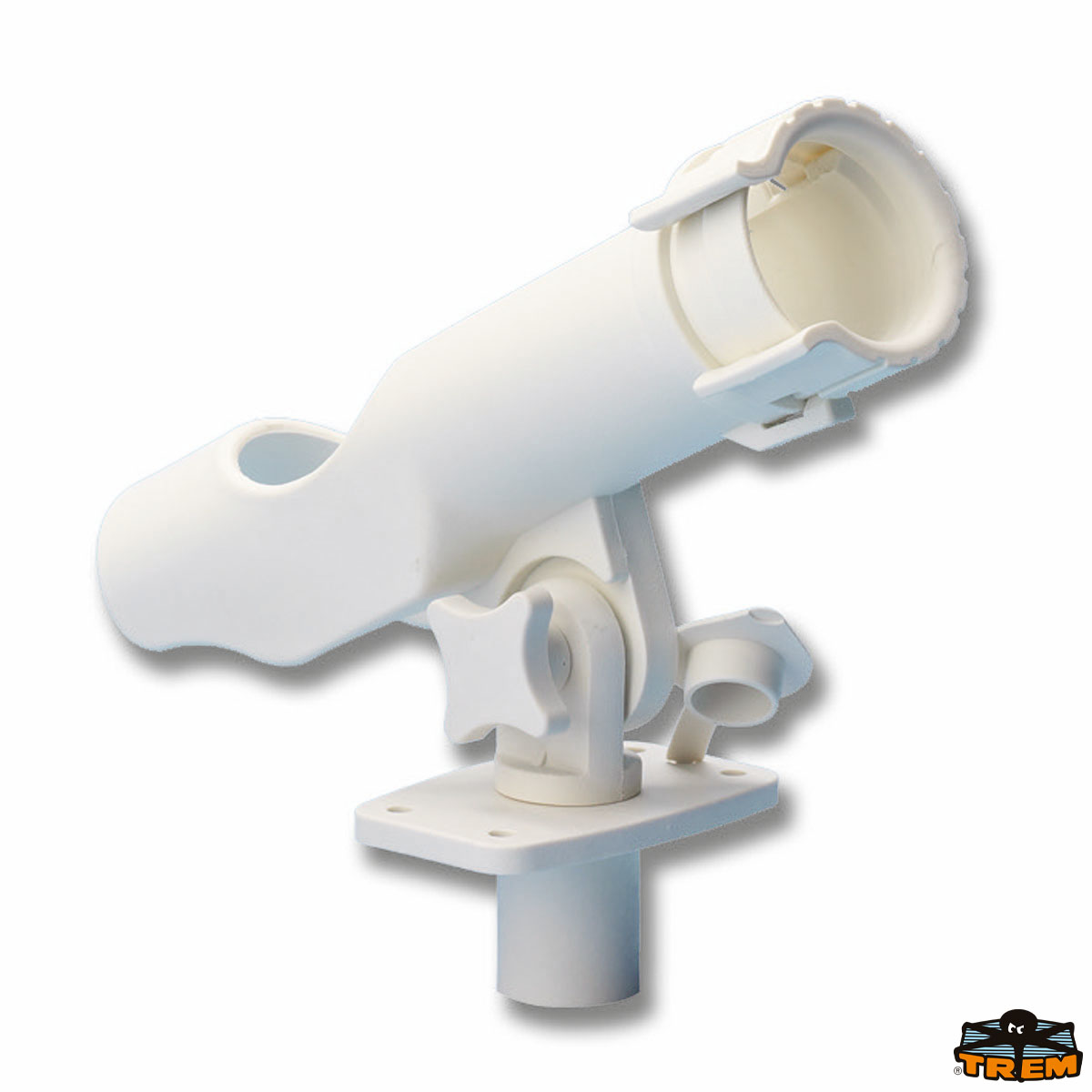In plastica orientabile, foro Ø 40 mm. Fissaggio orizzontale con basetta ad incasso. Anello rotante con blocco della canna.
