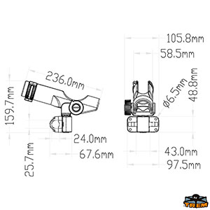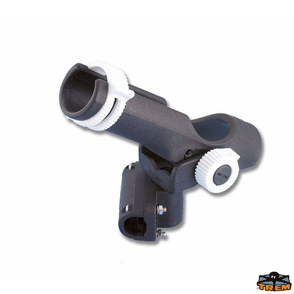Può ruotare ed essere bloccato per 360°. Anello superiore di blocco della canna. Attacco su battagliola Ø 25 mm.