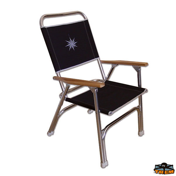 Anodized aluminium frame Ø 25 mm. Sturdy 600D polyester seat. Stainless steel bolts and screws. Painted wooden armrests.