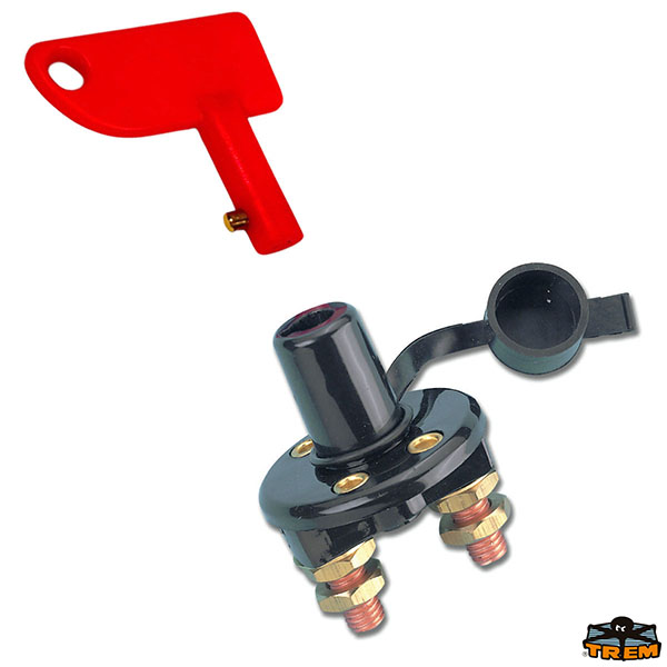 Modello con perno chiave in ottone nichelato, robustissimo. Omologato CE. Dispositivo obbligatorio da montare sul cavo positivo, norme ISO 10133.
