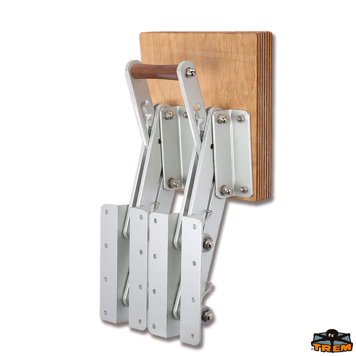 Fabbricato in alluminio. Tavoletta in legno di mogano verniciato. Regolabile a 4 posizioni. Realizzata a doppio telaio. Molle e viteria Aisi 316.