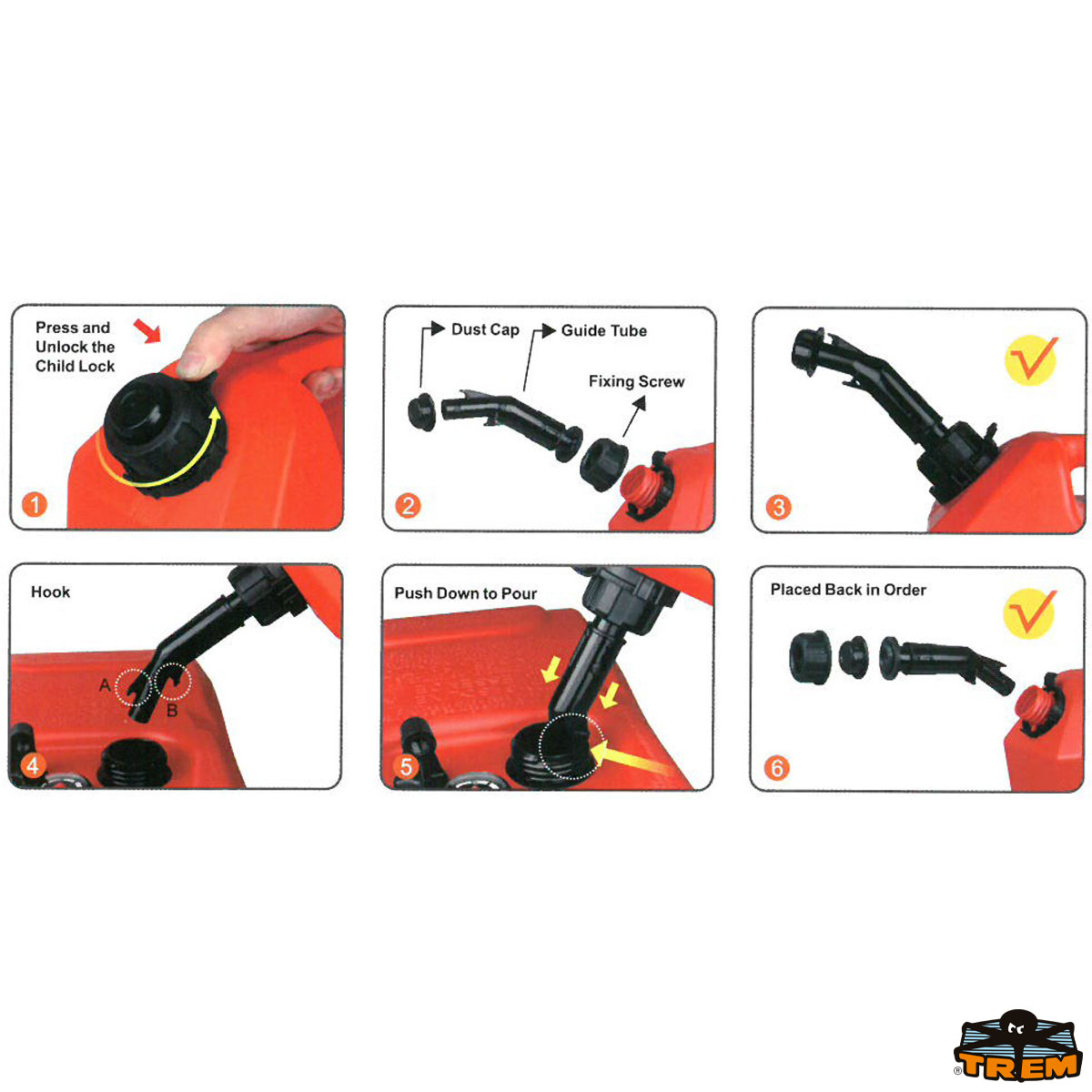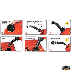 5-10-20 litres automatic shut-off fuel cans which are designed with specially proportioned rear handle for balanced pouring that is self venting for safer & easier pouring. Features reduced emissions to protect the environment and meets EAP & AS/NZS 2906:2001 Standards. Complies to EPA & CARB Standards Spill Proof, durable vented pouring spout. UV stabilised high grade polyethylene.