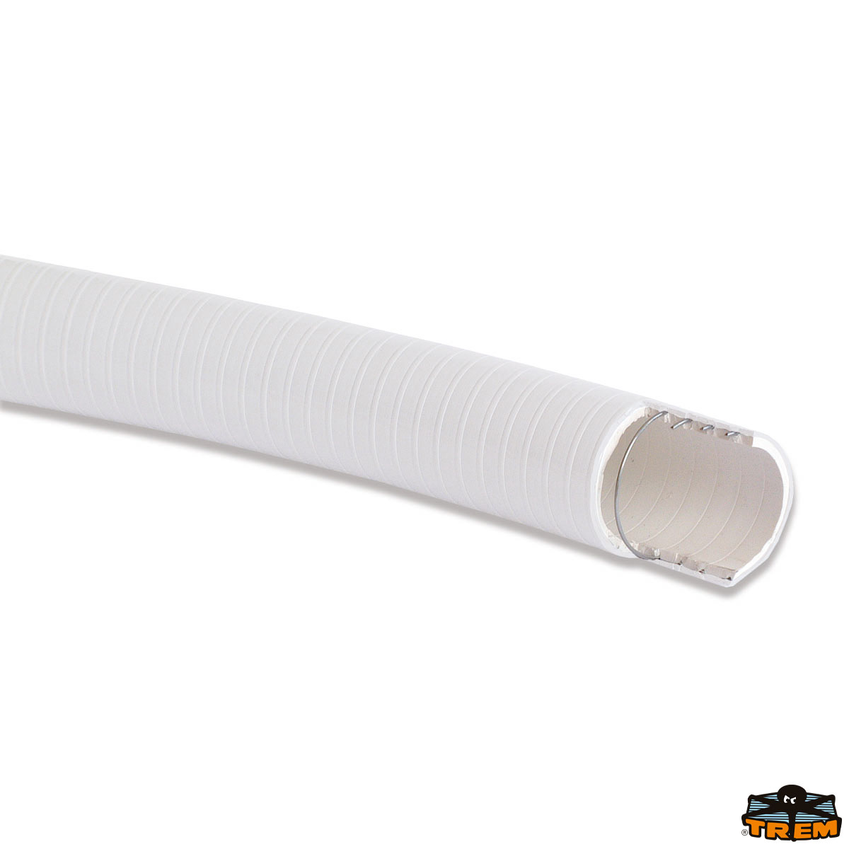 Fabbricato in PVC bianco con spirale in acciaio, antiodore per servizi sanitari, scarico pompe e lavelli.