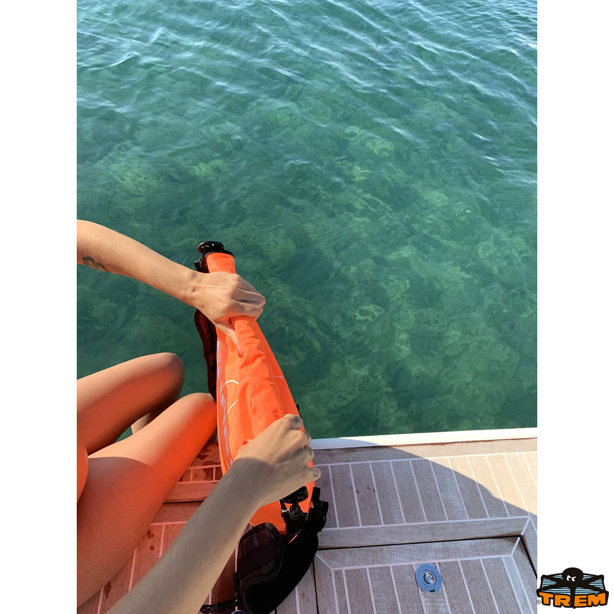 Inoltre, è possibile legarselo in vita e utilizzarlo come pallone di segnalazione durante lo snorkeling e le immersioni.